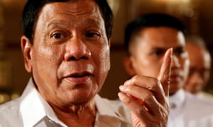 FacebookTwitterPinterest Philippine President Rodrigo Duterte talks to reporters after a news conference at the presidential palace in Manila in March 2017. Photograph: Erik de Castro/Reuters